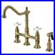Kingston Brass KS1273PXBS Kitchen Bridge Faucet with Side Sprayer, Antique Brass. 1/4 Turn Ceramic Disc Cartridge. 8″ Spread 4-Hole Counter Mount Installation; 8-3/4″ Spout Reach. Max 1.8 GPM/6.8 LPM Water Flow Rate At 80 PSI (ASME standard). Compliant with California Energy Commission Title 20. Any product you return must be in the same condition you received it and in the original packaging. Please keep the receipt. We usually respond within 24 hours on weekdays. Thank you for shopping at our store.