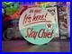 Sign Approximately 22 ½” x 28 ½” print applied to composite aluminum panel. Cut to shape by hand and weathered with real rust and various paint techniques to give it that old vintage look. Good indoors or out.