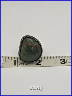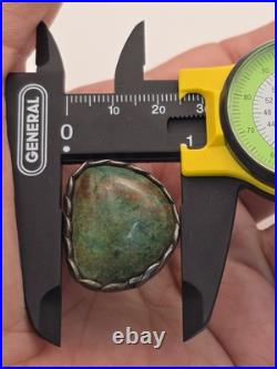This vintage Native American handmade sterling silver ring features a beautiful green turquoise stone. The traditional design and craftsmanship make it a unique and authentic piece of jewelry. With a ring size of 10.5, this piece is both stylish and comfortable. The 925 sterling silver metal adds a touch of elegance, making it a perfect accessory for any outfit. METAL STERLING SILVER 925. WEIGHT 16.6 GRAMS. RING IT’S ABSOLUTELY GORGEOUS. FOR MORE DETAILS SEE PICTURES.